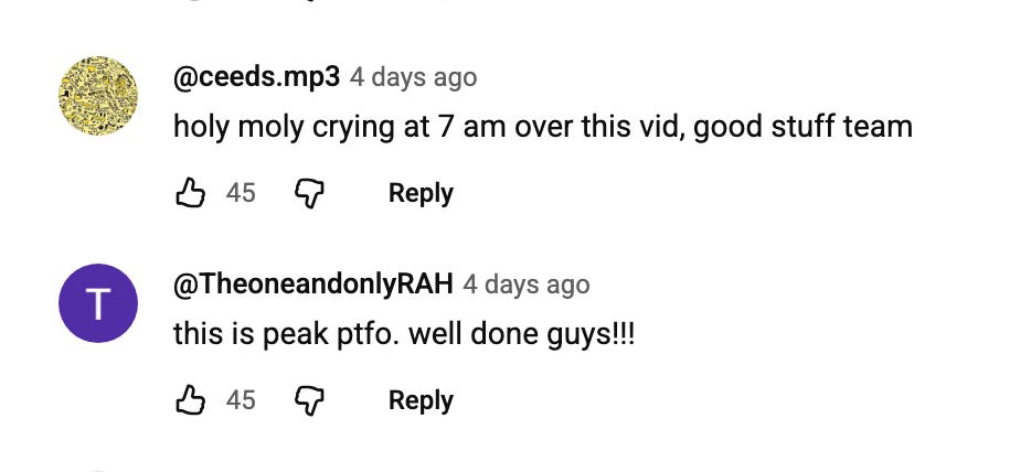 Holy shit, holy SHIT, it finally came out, it actually exists — on YouTube up there, Apple Podcasts here, and Spotify here. This is one of my favorite things I’ve ever worked on, full stop. I’m incredibly proud of what we made, so much so, that I’m breaking my own personal five-years-running rule about exploiting the FOSTERTALK media ecosystem to shill anything I’ve created outside of it. So you’re not a sports person, you say — do you know who you’re reading? Look: This podcast episode’s about basketball like Friday Night Lights (the TV show!) is about football, which is to say: Kind of, but not really. Many, many people had reactions like those above. I think you’ll like it.